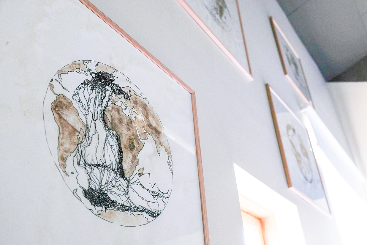 The Kingdom of the Arctic Tern is a series of works where I looked at the journeys of the Arctic Tern. The Arctic Tern is one of the most widely distributed migratory birds known. It breeds in the Arctic, but flies south in the fall towards Antarctica, where it stays at the edge of the ice sheet, on Southern Ocean islands and even on Antarctica itself. In the Northern Hemisphere spring, she flies back to her breeding grounds. She travels from the South Pole to the North Pole every year and it is estimated that she travels approximately 70-80 thousand kilometres per year. Herons can live for more than 30 years, so during their lifetime they can fly more than 2 million km. Here at Hali in Suðursveit, there is a large heron nest, which the writer Þórbergur Þórðarson wrote about in The Hymn about the flower, among other things.